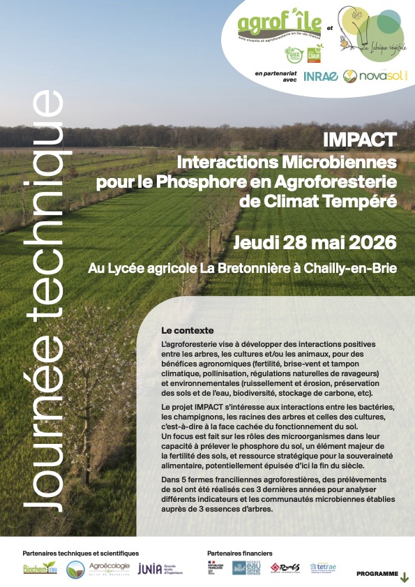 Agrof’île, la Fabrique végétale et leurs partenaires Novasol Experts et l’INRAE vous invitent à la restitution du projet IMPACT : Interactions microbiennes pour le phosphore en agroforesterie de climat tempéré,